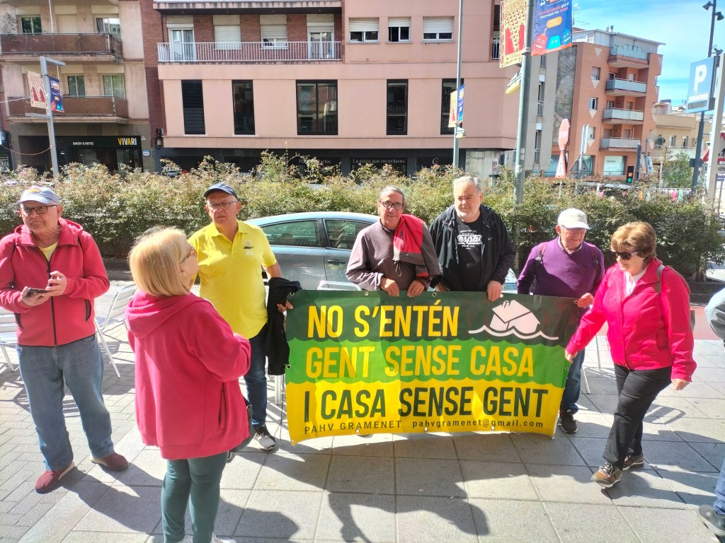 I després de la concentració hem acompanyat a la PAHV-Gramenet a una oficina del BBVAper trobar solucions habitacionals a vàries famílies de Gramenet i denunciar que Cerberus i Divarian no compleixen la Llei Catalana d’habitatge en no concedir lloguer social.