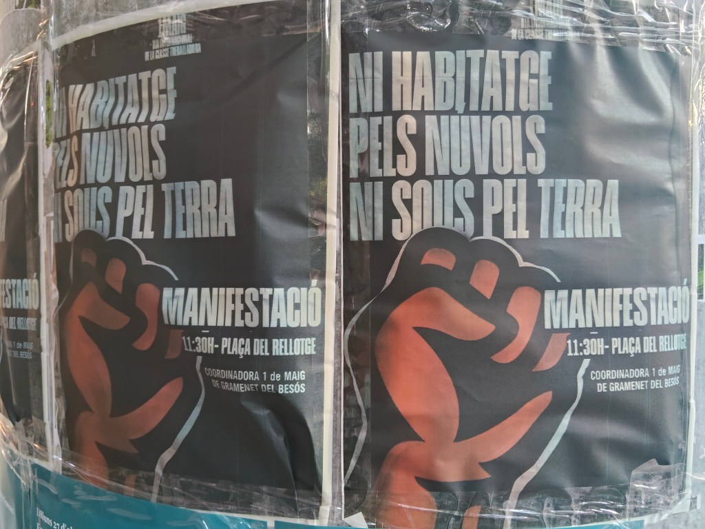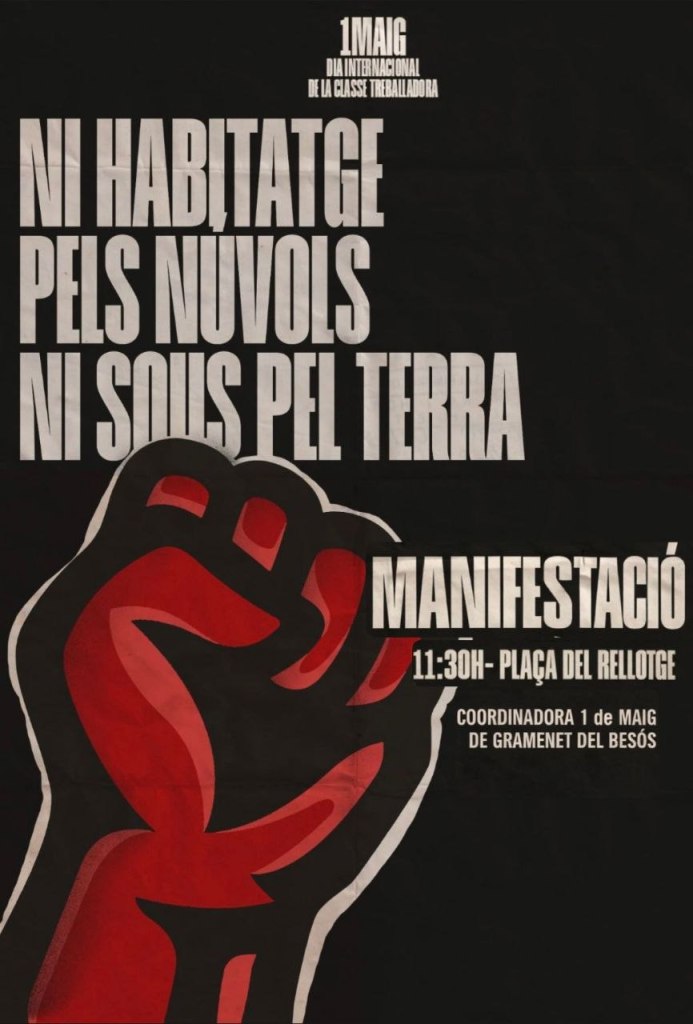 El proper 1M a les 11:30h sortim des de la Plaça del Rellotge per a lluitar per un habitatge digne i per la dignitat de la classe treballadora. Suma-t’hi! Ni salaris pel terra, ni habitatges pels núvols!!!!