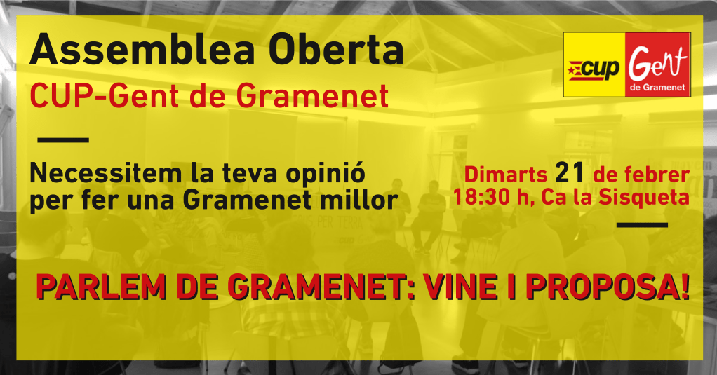 I… finalment, recordem la convocatòria de la nostra Assemblea Oberta, pel dimarts 21 de febrer a les 18:30h a Ca la Sisqueta